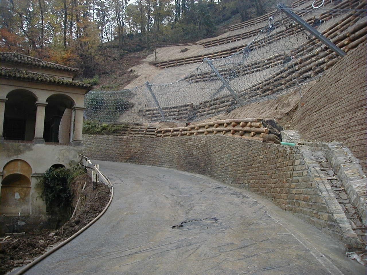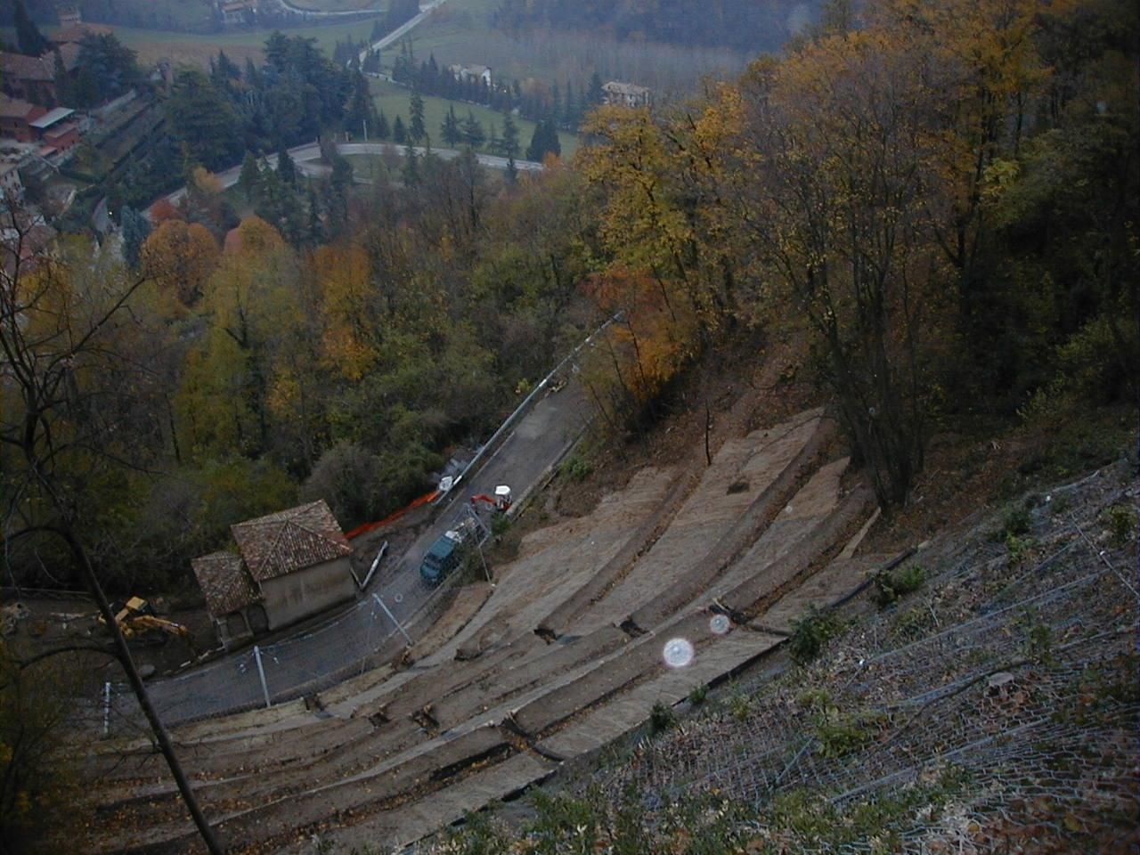 Nell'inverno 2008 si sono attivati i primi movimenti gravitativi sul versante a monte della cappella di S. Eusebio presso il Sacro Monte di Crea (Sito Unesco); ad aprile 2009 eventi meteorici intensi hanno ulteriormente aggravato la situazione geostatica dell'intero Sacro Monte con una trentina di dissesti di cui tre molto significativi con danni per oltre 600 mila euro di costi pubblici per i quali abbiamo prestato la nostra opera di consulenza finalizzata al pronto ripristino con soluzioni rispettose del contesto ambientale e paesaggistico. A Novembre 2009 l'emergenza sulla SP 19 Serralunga-Ponzano era risolta.